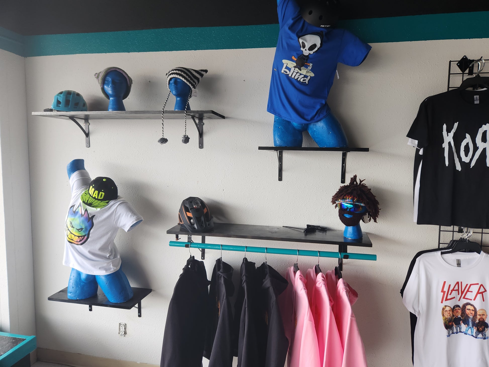 We offer a wide variety of clothing, specializing in creative and unique fashion as well as keeping it fun. We have: Hoodies, jackets, T-shirts, pants, beanies, hats, and more in store only for now. Come check it out.